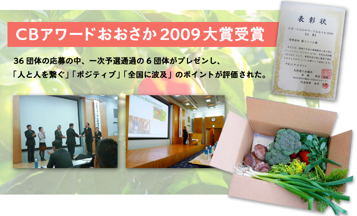 | 2013年12月14日 | CB・CSOアワードおおさか2013 優秀賞 受賞 |